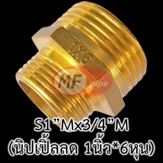 นิปเปิ้ลลด ทองเหลือง (ตรงลด ผผ.) S1″Mx3/4″M (1 นิ้ว*6 หุน)