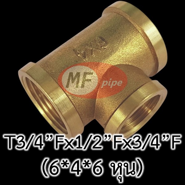 ขนาด T3/4″Fx1/2″Fx3/4″F เป็นข้อต่อ สามทาง เกลียวในทั้ง 3 ด้าน รูปตัวที (T) แขนสองข้าง (ซ้าย-ขวา) ขนาด 6 หุน ตรงกลางลดขนาดเป็น 1/2″